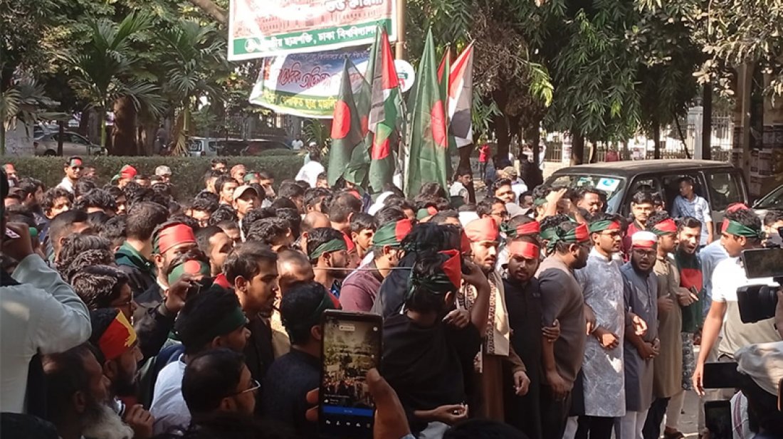 দুপুর ১টার দিকে বিক্ষোভকারীরা ডাকসুর সামনে স্লোগান দিতে থাকেন এবং ধীরে ধীরে জমায়েত বাড়তে থাকে। এ সময় জমায়েতে উপস্থিত ছিলেন ডাকসুর সহ-সভাপতি, সহ-সাধারণ সম্পাদক, সাহিত্য ও সংস্কৃতি সম্পাদক, সমাজসেবা বিষয়ক সম্পাদকসহ বিভিন্ন হল সংসদের নেতারা।