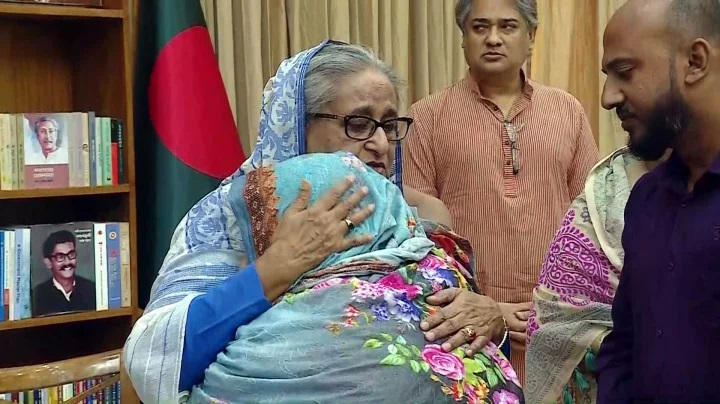গণভবনে কোটা সংস্কার আন্দোলনে সাম্প্রতিক সহিংসতায় নিহতদের পরিবারের সঙ্গে সাক্ষাৎ করেছেন প্রধানমন্ত্রী শেখ হাসিনা। রংপুরে বেগম রোকেয়া বিশ্ববিদ্যালয়ের ইংরেজি বিভাগের শিক্ষার্থী আবু সাঈদসহ দেশের বিভিন্ন স্থানে নিহত ৩৪ জনের পরিবার গণভবনে আসেন।