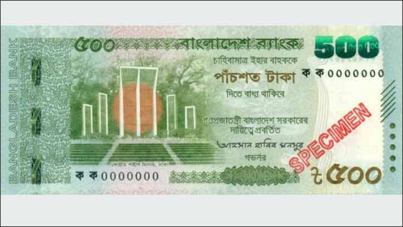দেশে প্রথমবারের মতো গভর্নর ড. আহসান এইচ মনসুরের স্বাক্ষরযুক্ত নতুন নকশার পাঁচশ টাকা মূল্যমানের নোট আজ থেকে বাজারে আসছে। প্রাথমিকভাবে বাংলাদেশ ব্যাংকের মতিঝিল অফিস থেকে এই নোট ইস্যু করা হবে। 'বাংলাদেশের ঐতিহাসিক ও প্রত্নতাত্ত্বিক স্থাপত্য' শীর্ষক নতুন সিরিজের অংশ হিসেবে এই নোটে কেন্দ্রীয় শহীদ মিনার ও সুপ্রিম কোর্ট ভবনের ছবি ব্যবহার করা হয়েছে। বাংলাদেশ ব্যাংক থেকে পাঠানো এক প্রেস বিজ্ঞপ্তিতে বিষয়টি জানানো হয়।