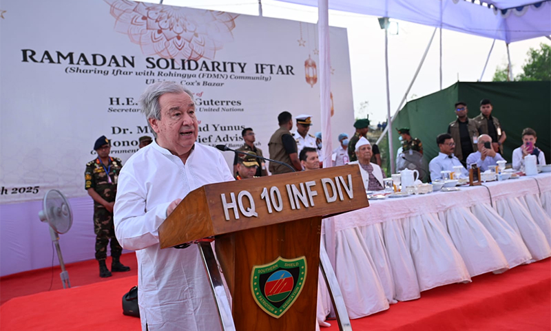 এ দিন দুপুর ১টার দিকে বিমানে কক্সবাজারে পৌঁছান গুতেরেস। বিমানে তার সঙ্গে ছিলেন প্রধান উপদেষ্টা অধ্যাপক মুহাম্মদ ইউনূস। বিমান থেকে নেমে গুতেরেস চলে যান উখিয়ায় রোহিঙ্গা ক্যাম্পে। প্রধান উপদেষ্টা এ সময় তার পূর্বনির্ধারিত অন্য দুটি কর্মসূচিতে যোগ দিতে যান। সন্ধ্যায় তারা দুজনেই আবার ইফতারে হাজির হন একসঙ্গে।