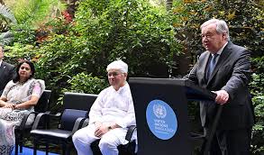 সকালে, জাতিসংঘ মহাসচিব ঢাকায় নতুন জাতিসংঘ কমন প্রাঙ্গণ পরিদর্শন করেন এবং সেখানে ৫০তম বার্ষিকী উপলক্ষে আয়োজিত আলোকচিত্র প্রদর্শনী ঘুরে দেখেন। তিনি আনুষ্ঠানিকভাবে জাতিসংঘের পতাকা উত্তোলনও করেন।