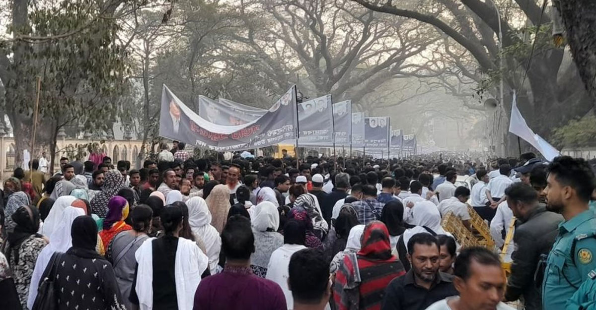 ভাষাশহীদদের প্রতি ফুল দিয়ে জানাচ্ছেন সকলে। কেন্দ্রীয় শহীদ মিনারে পলাশী মোড় দিয়ে প্রবেশ করছেন সাধারণ মানুষ। শ্রদ্ধা নিবেদন শেষে তাদেরকে বের হতে হচ্ছে চাঁনখারপুল ও কার্জন হল এলাকা দিয়ে।